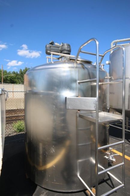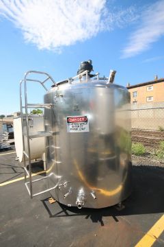 Cherry-Burrell 1,000 Gal. S/S Batch Processor, M/N EPDA, S/N 1000-80-2475, with Top Mounted Agitation Motor, with Dual S/S CIP Spray Ball, with S/S Legs & S/S Man Ladder, Aprox. 115” H (to the top of the drive motor) x 75” w. Also, welded ladder hangs out another 17”(INV#70267) (Located at the MDG Auction Showroom in Pgh., PA)(Rigging, Handling & Site Management Fee: $500.00)
