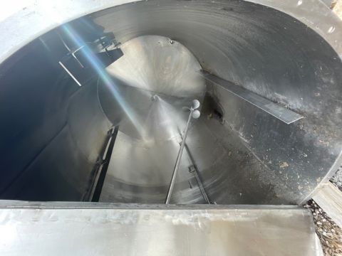 Aprox. 1,600 Gal Vertical S/S Tank, with Hinged Lid, Sloped Flat Bottom, Lightnin 3 hp / 1760 rpm, 208 - 220/440 V 3 Phase with 3 Prop Agitator, 1.5” CT Bottom Connection, (Aprox. Overall Dim. 90” H x 79" W (INV#78126)(Located @ the MDG Showroom - Pgh., PA)(Rigging, Loading & Site Management Fee: $250.00)