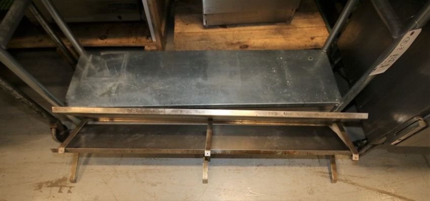 6 - Pcs Assorted S/S Tables with Shelf,Tables Sizes - 58” L x 18”W, 49” L x 24” W, 24” x 24”, Shelf - 36” & (2) 55” L (INV#78233)(Located @ the MDG Showroom - Pgh., PA)(Rigging, Loading & Site Management Fee: $40.00)