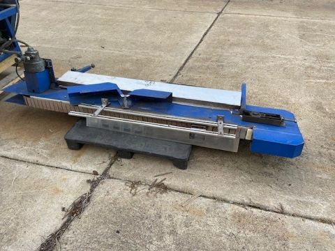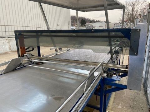 Ideas-In-Motion 1/2 Gallon Semi-Automatic Cold Knife Debagging Table, S/N 17066A, with Aprox. 4' W Plastic Belt, Overall Dims.: Aprox. 166" L x 80" W x 87" H, with S/S Table Cover, with Aprox. 8' L Straight Section of Infeed Conveyor (INV#69032)(LOCATED AT MDG AUCTION SHOWROOM--PITTSBURGH., PA) (Rigging, Handling & Site Management Fee: $300.00 USD)