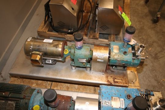 Tri-Clover 1 hp Positivie Displacement Pump,M/N TCIP2NLD-15MEY415H-AQ-DM1A, S/N 541697-01, with Aprox. 1-1/2" Clamp Type Inlet/Outlet, with S/S Impellers, with S/S Clad Motor, 1740 RPM Motor, Mounted on S/S Skid (INV#74604)(Located @ the MDG Auction Showroom - Pittsburgh, PA)(Rigging, Loading & Site Management Fee: $100.00 )