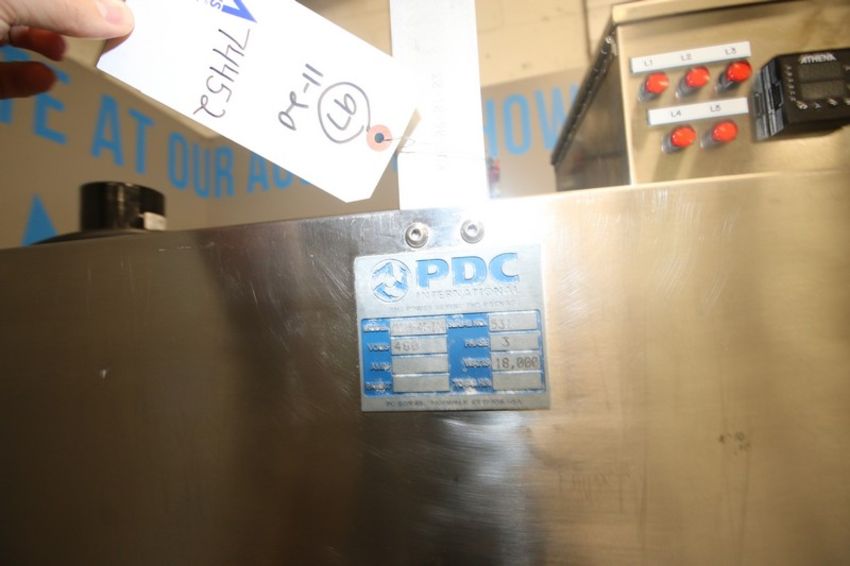 PDC HEAT SHRINK TUNNEL, MODEL PDC KAL-200, S/N376, 46" L X 11" W APERTURE, 480 Volts, 3 Phase, Mounted on S/S Frame (INV#74452) (LOCATED AT MDG AUCTION SHOWROOM--PITTSBURGH., PA) (Rigging, Handling & Site Management Fee: $100.00 USD)