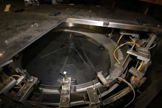 Enclosed S/S Accumulation Station, with (4) HingeLids, with Aprox. 48" Dia. Rotating Accumulating Area (NOTE: Missing (1) Lid) (INV#65624)(Located @ MDG Showroom - Bldg. B Pittsburgh, PA)(Rigging, Loading & Site Management Fee $200.00)