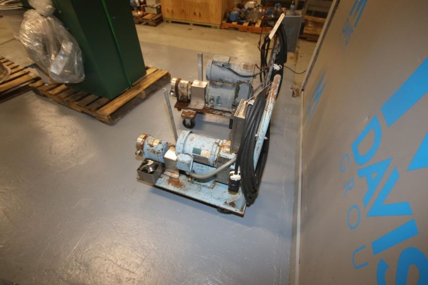 Waukesha 1/2 hp Positive Displacement Pump,Size 3, S/N D078527 SS, with Aprox. 1" Thread Type Inlet/Outlet, with S/S Impellers & Cover, with Square D On/Off Switch, Mounted on Portable Frame (INV#69027) (LOCATED AT MDG AUCTION SHOWROOM--PITTSBURGH., PA) (Rigging, Handling & Site Management Fee: $50.00 USD)