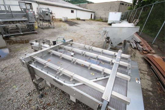 Garvey 6 ft L x 48" W x 37" H S/S ConveyorAccumulation Table, Model 9700, SN 20005, with 3 Section Top Plastic Chain, Top Rail Product Stabilizer, with Drive, (Aprox. Overall Dim. 117" L x 56" W x 50" H) (INV#69041)(Located at the MDG Showroom – Pgh. PA) (Rigging, Loading and Site Management Fee: $250.00 USD)