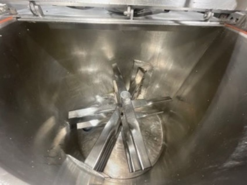 Aprox. 100 Gal. S/S Mixing System,Tank Internal Dims.: Aprox. 30" Deep x 30" Dia., with S/S Hinge Lid, Includes S/S Multi-Blade High Yield Agitation, with 10 hp/1760 RPM Agitation Motor, 208-230/460 Volts, 3 Phase, with Crepaco R4R Positive Displacement Pump, with ControlPanel, System is Skid Mounted (INV#77744)(Located @ the MDG Showroom - Pittsburgh, PA)(Rigging, Loading & Site Management Fee: $225.00 USD)