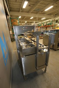 S/S Ice Cream Bucket Filler,with 8" W Conveyor (Possibly Mfg by Sawvel), Dims.: Aprox. 82" L x 40" W x 77" H (INV#77628)(Located @ the MDG Showroom in Pittsburgh, PA)(Rigging, Loading & Site Management Fee: $150.00 USD)