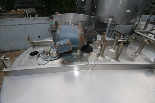 Aprox. 200 Gal. Hinged Lid S/S Jacketed Mix Tank, with Top Mounted Drive Motor with Bottom Sweep Agitation with Aprox. 1/2 hp Drive Motor, with (2) 1.5" Top Threaded Top Connections, Side 2" Clamp Type Connection with Butterfly Valve, Tank Mounted on Wheels, Overall Dims.: Aprox. 52" W x 65" H(INV#78674)(Located @ the MDG Auction Showroom in Pittsburgh, PA)(Rigging, Loading & Site Management Fee: $300.00 USD)