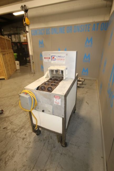 Cinelli 2-Lane Dough Molder,M/N CG 182, S/N 000H-774, 115 Volts, 1 Phase, with Aprox. 8-1/2" W Conveyor Belt Discharge, Mounted on Portable Frame (INV#71777)(LOCATED AT MDG AUCTION SHOWROOM--PGH., PA) (Rigging, Handling & Site Management Fee: $100.00)