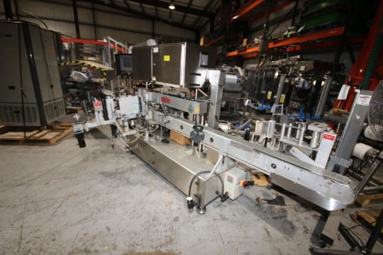 Accraply In-Line LabelerModel 9000 PW, SN 4262, with 4.5" W Conveyor, SP10 Head, Allen Bradley Micrologix 1400 PLC Controller with Touch Pad Display, 230V 3 Phase, (Aprox. Overall Dim. 17' L x 8' W x 80" H)(INV#78680)(Located @ the MDG Auction Showroom in Pittsburgh, PA)(Rigging, Loading & Site Management Fee: $250.00 USD)