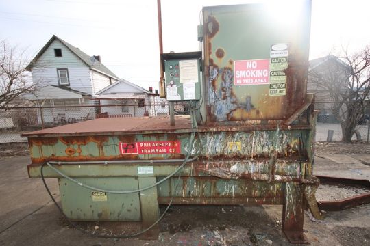 Philadelphia Tramrail Trash Compactor,M/N TP-2000, S/N 982-7754, Overall Height: Aprox. 8' H, with On Board Hydraulic System, Compact Opening Dims.: Aprox. 5' W x 38" H, Overall Dims.: Aprox. 10' 9" L x 68" W (INV#68795) (Located at the MDG Showroom - Pittsburgh, PA)