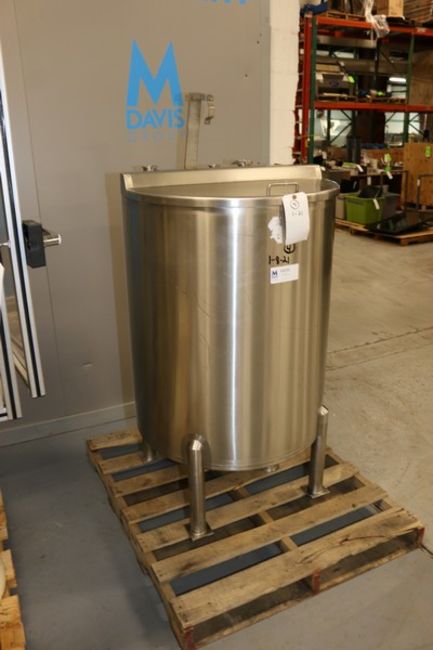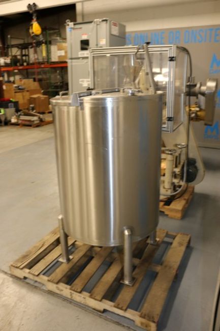 Aprox. 100 Gal. S/S Single Wall Vertical Tank,with S/S CIP Spray Ball, with S/S Hinge Lid, Mounted on S/S Legs (INV#69034) (LOCATED AT MDG AUCTION SHOWROOM--PITTSBURGH, PA) (Rigging, Handling & Site Management Fee: $50.00 USD)
