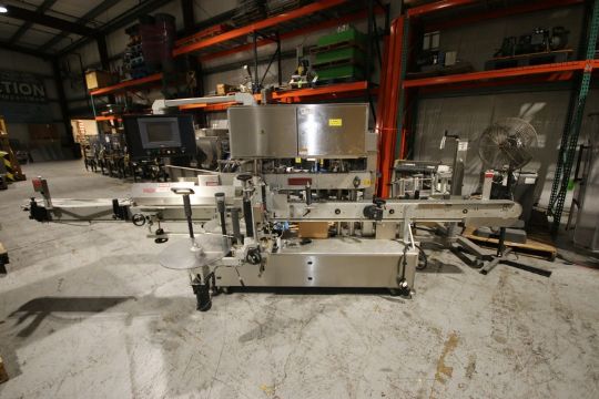 Accraply In-Line LabelerModel 9000 PW, SN 4262, with 4.5" W Conveyor, SP10 Head, Allen Bradley Micrologix 1400 PLC Controller with Touch Pad Display, 230V 3 Phase, (Aprox. Overall Dim. 17' L x 8' W x 80" H)(INV#78680)(Located @ the MDG Auction Showroom in Pittsburgh, PA)(Rigging, Loading & Site Management Fee: $250.00 USD)