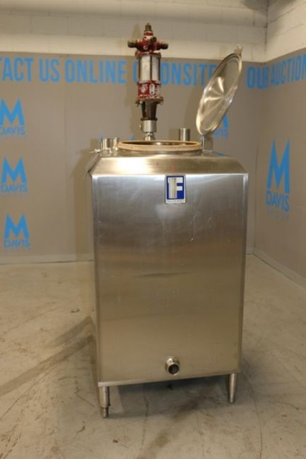 Feldmeier Aprox. 180 Gals. S/S Vertical JacketedTank, Rectangular Design, S/N F-582-93, with Top Mounted Cylinder Pump & S/S Shaft, Mounted on S/S Legs with S/S Hinge Lid (INV#70235) (LOCATED AT M. DAVIS GROUP AUCTION SHOWROOM--PITTSBURGH, PA) (Rigging, Handling & Site Management Fee: $150.00)