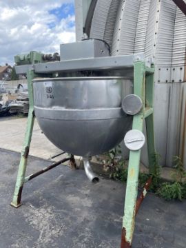 Lee 250 Gallon S/S Jacketed Tilt Type Kettle, SN 989E, WP-125 psi, with Scrape Surface Type Agitator, 2 hp Agitator, 1725 rpm, 230/460V 3 Phase, with 4" Threaded Bottom Connector & Steel Frame, (Aprox. Overall Dim. 7' L x 5' W x 90" H)(INV#73251) (Located at the MDG Showroom – Pittsburgh, PA)(Rigging, Loading and Site Management Fee: $200.00 USD)