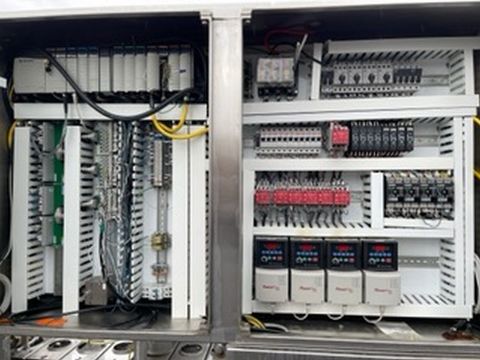 Osgood 4-Lane In-Line S/S Cup Filler,M/N 4800-E, S/N 351-840, Set Up with 3-5/8" W On-Board Change Parts, with Cup Denester, Roll Stock Film with Tamper Evident Sealer & Lidder, with Allen-Bradley Logix 5560 PLC Controller with Touch Display, (4) PowerFlex VFD's Kinetix 6000Servo Drive, 480 Volts, 3 Phase, Overall Dims.: Aprox. 23' 5" L x 5' W x 7' 3" H (NOTE: Some Parts Missing Including Filler Bowl & Fill Valve Assembly; Also Includes (2) 4-1/4", 4-5/8", 3-5/8", & 5-3/8" Cup Dispenser Rails (INV#73239) (Located @ MDG Auction Showroom in Pittsburgh, PA)(Rigging, Loading & Site Management Fee $1,000.00)