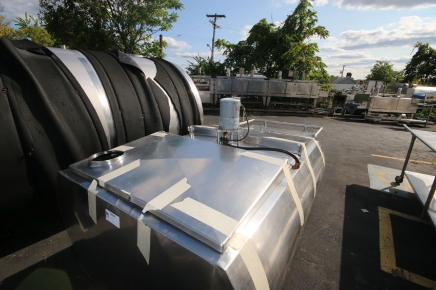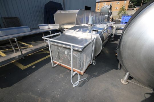 Approximately 300 gallon capacity S/S freon jacketed storage tank, center bridge with (2) lift up covers, with self contained freon refrigeration unit mounted on one end of tank. Mounted on Casters (INV#80036)(Located @ the MDG Auction Showroom in Pgh., PA)(Handling, Loading & Site Management Fee: $150.00 USD)