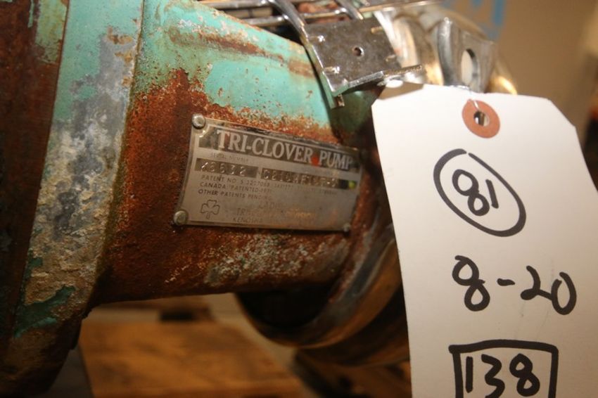 Tri-Clover 3 hp Centrifugal Pump,M/N C218MF18T-S, S/N K6632, with Aprox. 2" x 1-1/2" Clamp Type Inlet/Outlet, Mounted on S/S Frame(INV#71030)(LOCATED AT MDG AUCTION SHOWROOM--PGH., PA) (Rigging, Handling & Site Management Fee: $50.00)
