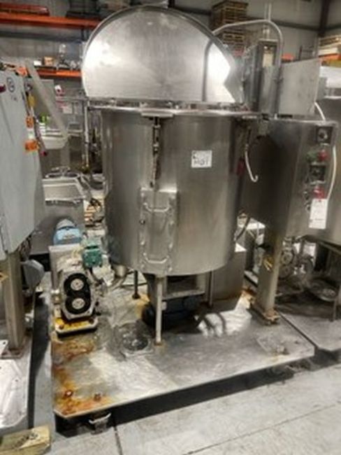 Aprox. 100 Gal. S/S Mixing System,Tank Internal Dims.: Aprox. 30" Deep x 30" Dia., with S/S Hinge Lid, Includes S/S Multi-Blade High Yield Agitation, with 10 hp/1760 RPM Agitation Motor, 208-230/460 Volts, 3 Phase, with Crepaco R4R Positive Displacement Pump, with ControlPanel, System is Skid Mounted (INV#77744)(Located @ the MDG Showroom - Pittsburgh, PA)(Rigging, Loading & Site Management Fee: $225.00 USD)