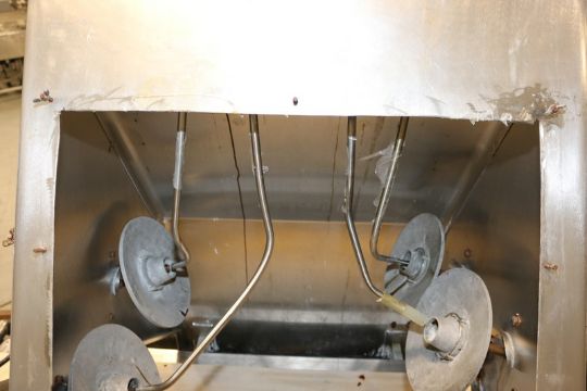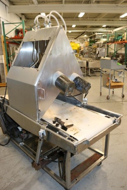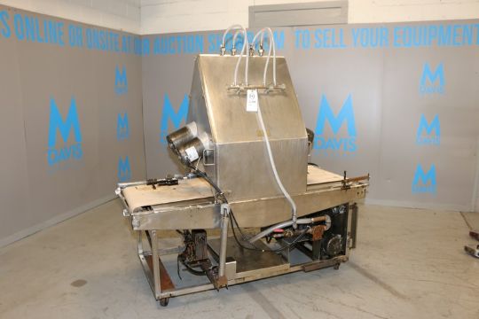 Bauer Machine Co. S/S Pan Greaser, with Aprox.22-3/4" W Infeed/Outfeed Belt, with Drives & Hoses, Mounted on Portable S/S Frame (INV#66077)(LOCATED AT M. DAVIS GROUP AUCTION SHOWROOM--PITTSBURGH, PA) (Rigging, Handling & Site Management Fee: $100.00)