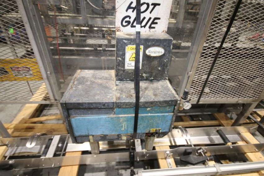 Vector Dynamics S/S Case Sealer, Model VDS-100,with 12" W Belt, Nordson Gluer, with Controls Including Direct Logix 05 PLC Controller, S/S Safety Cage Enclosure, Includes (3) pcs. S/S Product Conveyor Sections with Drive, (Overall Dim. Aprox. 10 ft L x 66" W x 8 ft H)(INV#63828)(Located @ MDG Showroom - Pittsburgh, PA)(Rigging, Loading & Site Management Fee $200.00)