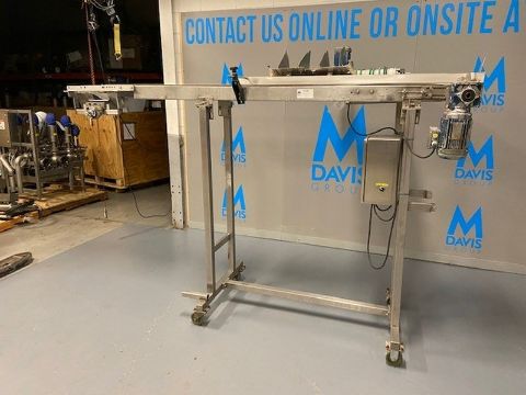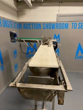Straight Section of S/S Product Conveyor,Belt to Floor Height: Aprox. 65-1/2" H, Aprox. 108" L, with Infeed Section, Mounted on S/S Portable Frame(INV#77526)(Located @ the MDG Showroom in PITTSBURGH, PA)(Rigging, Loading & Site Management Fee: $100.00 USD)