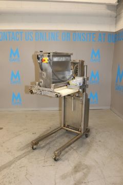 Tiefenthaler Machinery Co. S/S Dry GoodsDepositor, with Sterling 1/2 hp S/S Clad Drive, with Aprox. 19" W Belt, with Aprox. 18-1/2" L x 9-1/2" W x 21" Deep S/S Infeed Chute, with S/S Control Panel with (3) VFDs, Mounted on S/S Portable Frame (INV#66069)(LOCATED AT M. DAVIS GROUP AUCTION SHOWROOM--PITTSBURGH, PA) (Rigging, Handling & Site Management Fee: $150.00)
