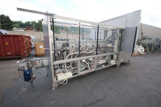 InterSleeve Labeler System,with Blowers & Conveyor, Aprox. 6-1/2" W S/S Conveyor Chain with Drives, Overall Dims.: Aprox. 22' L x 45" W x 19" H, Mounted on S/S Frame, with Control Panel (NOTE: Currently Set-Up to Label 14 FL. OZ. Bottles) (INV#80028)(Located @ the MDGAuction Showroom in Pittsburgh, PA)(Handling, Loading & Site Management Fee: $400.00 USD)
