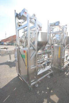 Raque S/S 4-Piston Filler,M/N PF2.5-4, S/N 1000164, with Hopper, 460 Volts, 3 Phase, Mounted on Casters (NOTE: Missing Piston Assembly Parts)(INV#70600)(Located at the MDG Auction Showroom in Pittsburgh, PA) (Rigging, Handling & Site Management Fee: $250.00)