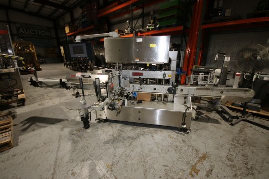 Accraply In-Line LabelerModel 9000 PW, SN 4262, with 4.5" W Conveyor, SP10 Head, Allen Bradley Micrologix 1400 PLC Controller with Touch Pad Display, 230V 3 Phase, (Aprox. Overall Dim. 17' L x 8' W x 80" H)(INV#78680)(Located @ the MDG Auction Showroomin Pittsburgh, PA)(Rigging, Loading & Site Management Fee: $250.00 USD)