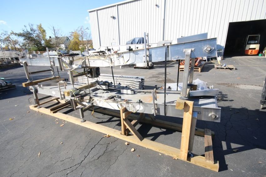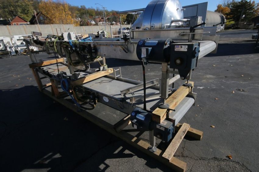 Lot of (2) Sections of BMI 14' L x 24" W x 20" H S/S Power Belt Conveyor with Intralox Plastic Conveyor Belt, 3/4 hp/1725 rpm Drives, Pneumatic Lane Stops, 208-230V 3 Phase (INV#80948)(Located @ the MDG Auction Showroom in Pgh., PA)(Handling, Loading & Site Management Fee: $150)