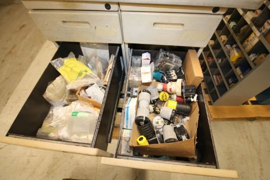 (7) Assorted Cabinets with Maintenance Hardware Including Plumbing Supplies, Electrical Supplies, Screws, Nut & Boldt Hardware, Solenoid Valves, Sprockets, Bearings & Couplers & Air Fittings (INV#80654)(Located @ the MDG Auction Showroom in Pgh., PA)(Handling, Loading & Site Management Fee: $100.00)