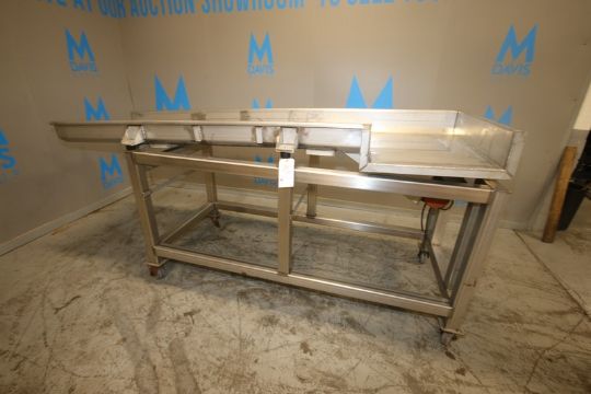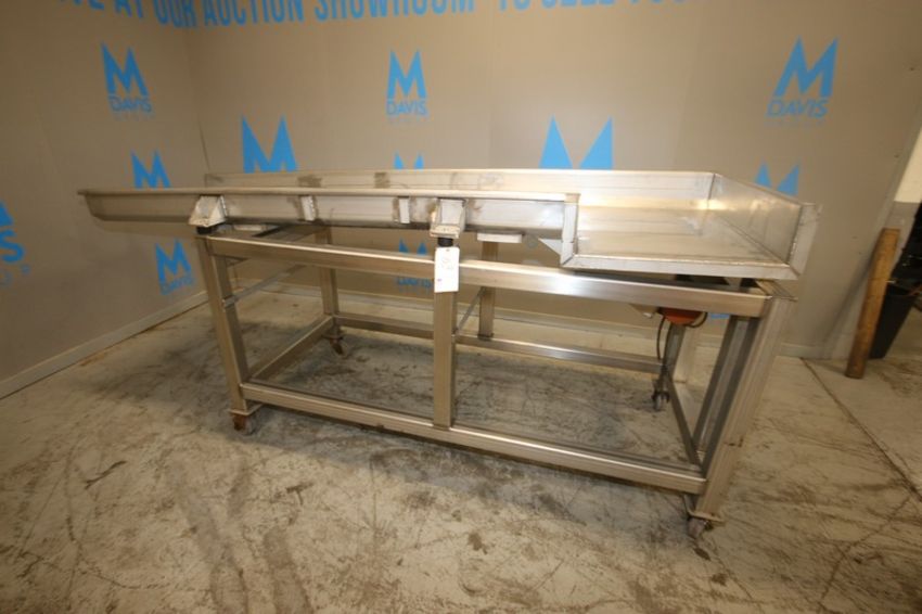 S/S Shaker Deck, with Slight Decline, Overall Dimensions: Aprox. 113" L x 39" W x 52" H, with Aprox. 27" W Deck, with (2) Drain Areas in Deck, with Shaker Motor, Mounted on Portable S/S Frame (INV#73203) (LOCATED AT M. DAVIS GROUP AUCTION SHOWROOM--PITTSBURGH, PA) (Rigging, Handling & Site Management Fee: $150.00)
