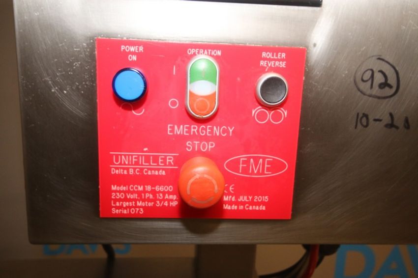 2015 Unifiller Dual Roll S/S Depositor, M/N CCM 18-6600, S/N 073, 230 Volts, 1 Phase, with Touchscreen Display, with Aprox. 21" W Belt, with Pallet of Spare Parts & Rolls, Mounted on S/S Portable Frame (INV#74821)(Located @ the MDG Auction Showroom in Pittsburgh, PA) (Rigging, Loading & Site Management Fee: $350.00 USD )