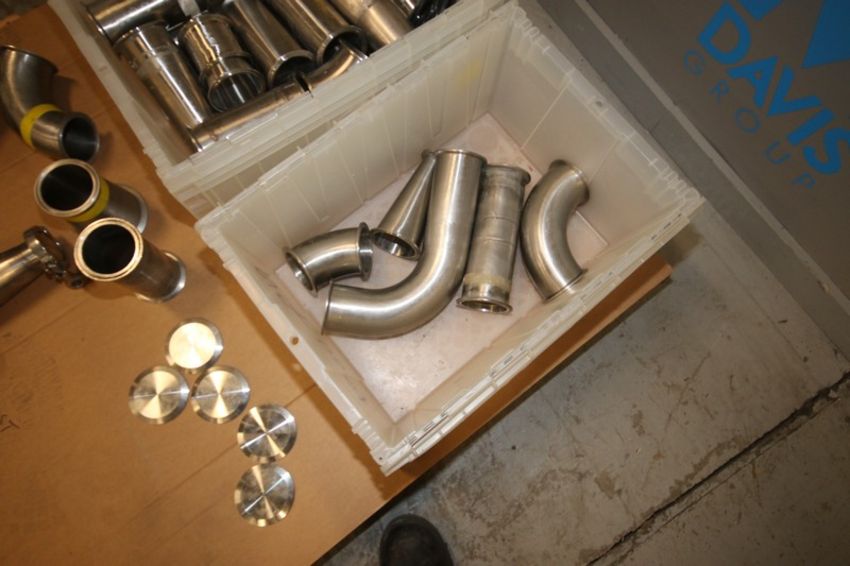 Lot of Assorted S/S Fittings, Includes Bin Full of Aprox. 2" Clamp Type Elbows, with (6) S/S Stoppers, & Other Assorted Clamp Type Fittings, with (1) Additional Pallet of Assorted 3" S/S Fittings with (5) S/S Stoppers (INV#70546) (Located at the MDG Auction Showroom--Pittsburgh, PA) (Rigging, Loading & Site Management Fee: $25.00 USD)