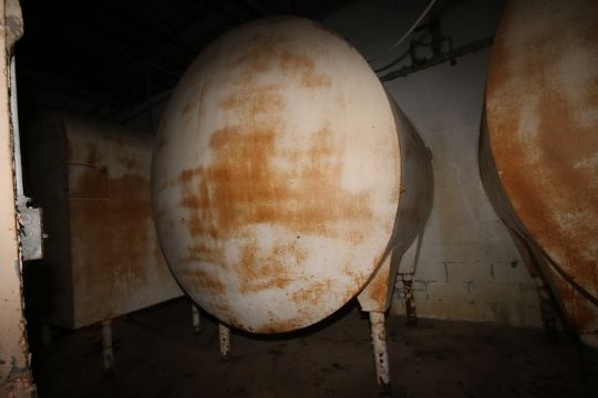 Aprox. 1,750 Gal S/S Horizontal Tank, with Carbon Steel Sheathing, Dish Heads, Tank Dims.: Aprox 84" Diameter x 72" Long with Ladder & Man Door, with Dual S/S CIP Spray Ball (LOCATED IN Muenster, TX)