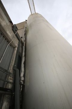 Aprox. 20,000 Gal. S/S Silo, Silo Dims.: Aprox. 10' Diameter x 35' H. Sloped Bottom, Partial Bottom Sidewall Jacket, Side Entering Agitator (LOCATED IN OKLAHOMA CITY, OK)
