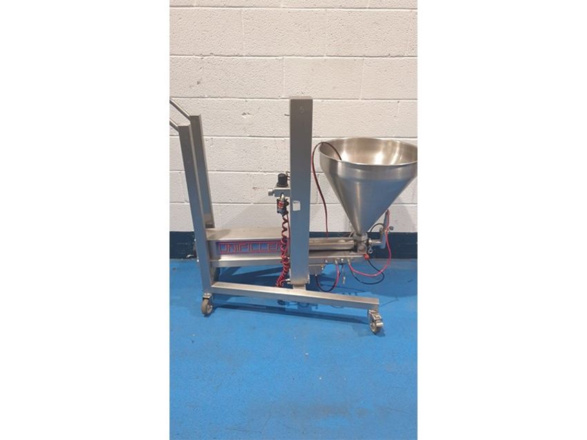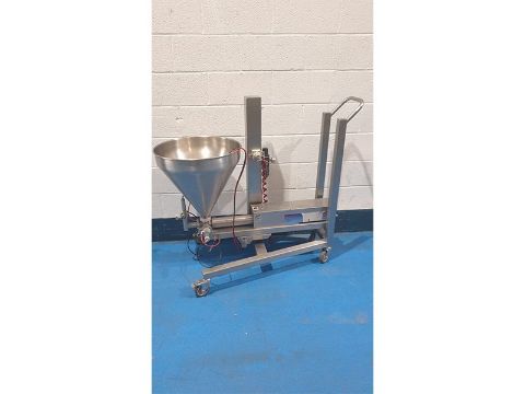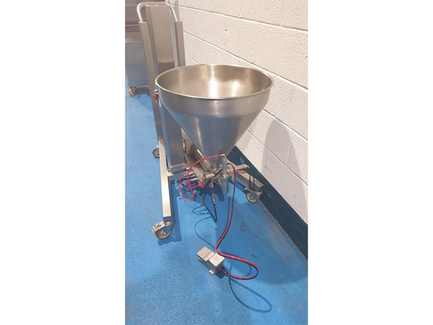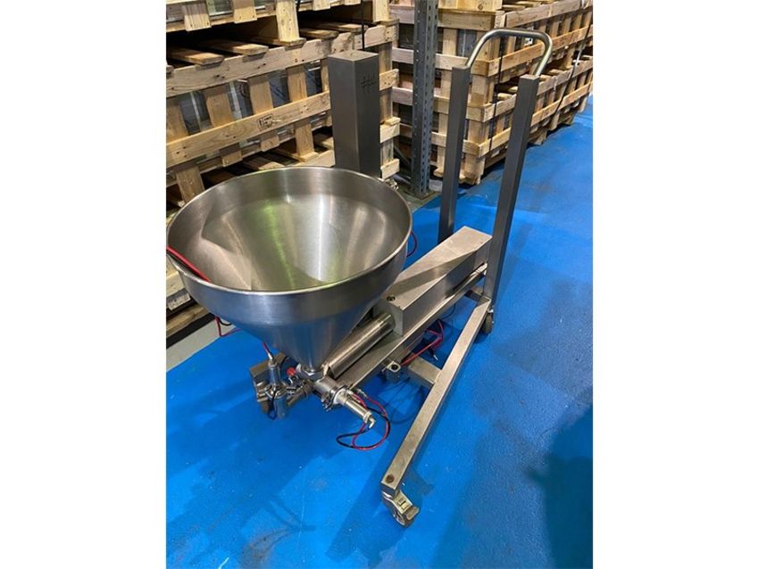 Unifiller Universal 1000i Depositor, S/N U1055946 includes 3'' Product Cylinder, 1.5'' General Purpose Outlet, Food Pedal Actuator and Conical Hopper. Machine is in good working order cleaned and workshop tested. (Located Jessup, MD) (Loading Fee $75.00)