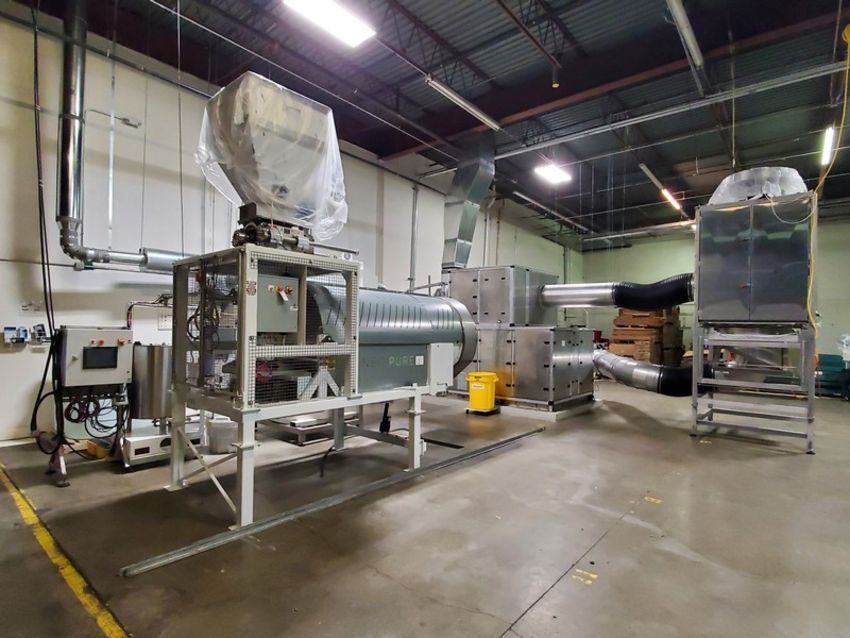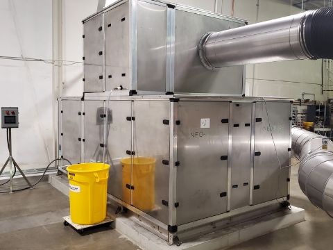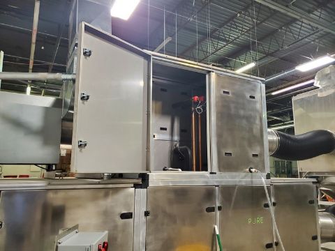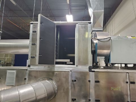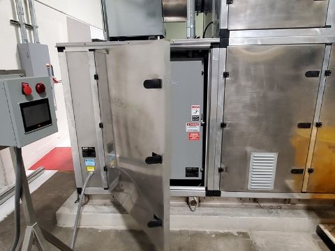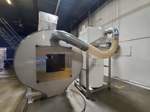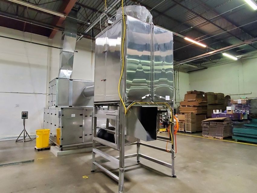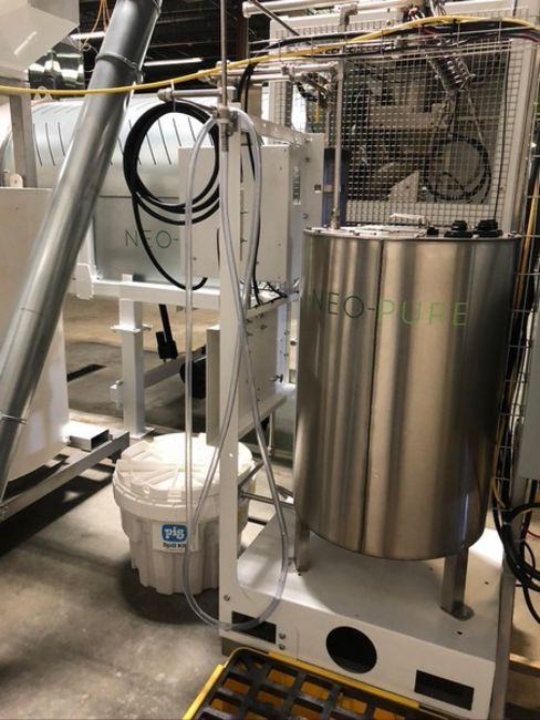 2018 Neo-Pure Seed, Nut, Grain & Hemp Pasteurizing and Drying System, Includes Neo-Pure Batch Applicator (Model NPA300R) with Up to 10-Mtric Tons/Hour Throughput & Neo-Pure Batch Dryer (Model NPDC 1000) with Minimum of 40 Tons/Week Throughput, Applicator Equipped with Schneider PLC, Validated to Achieve 5-Log Reduction of Pathogens Without Heat, Finished Product is Raw, Organic and Viable, Applicator Footprint Approx. 250 SQ FT, Applicator Approx. Dims: 12 x 6 x 14, Hopper Above Applicator 20 FT3 Capacity with Rotary Star Valve, Operator Touch Screen, Applicator Requires 34 AMPS at 460 VAC/3Phase, Dryer Chamber: 27 SQ FT, Approx. Chamber Dims: 64” W x 65” L x 130” H, AHU: 94 SQ FT, Discharge Height For Dryer is 18” But Can Be Raised up to 37”, Dryer Equipped with Carel PLC, Dryer Fused for 200 AMPS @ 460 VAC/3 Phase (Under Normal Conditions Operates Much Lower Due to Heat Recovery), Cost in 2018 Greater than $600,000 (OEM Information Sheet & Diagrams Available) (Located Denver, CO)