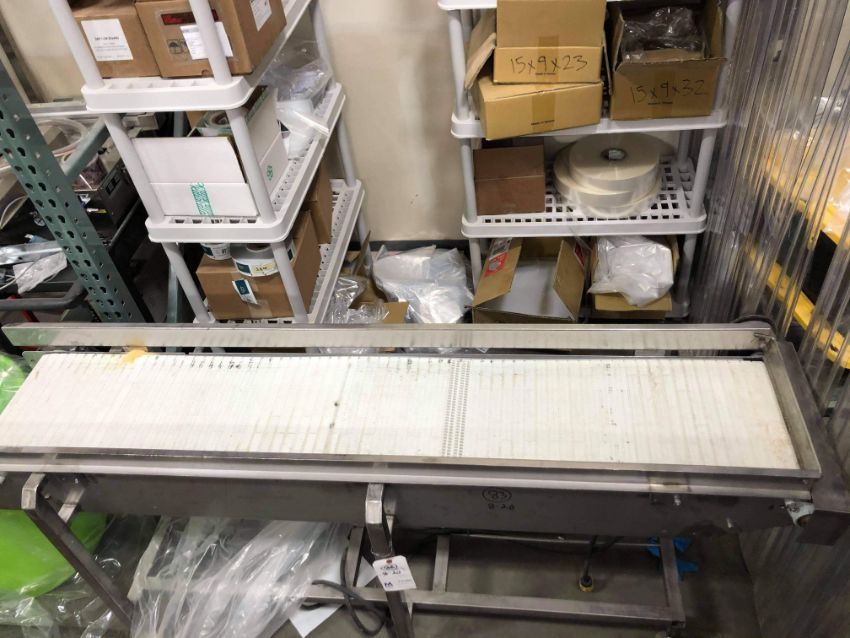 Straight Section of S/S Conveyor, with Plastic Interlock Belt & S/S Guides, with Drive. Belt: 77"Lx 14"W. Entire Unit: 83.5" L x 24" W (Rigging, Loading and Handling Fee: $100) (LOCATED IN LINDON, UT)