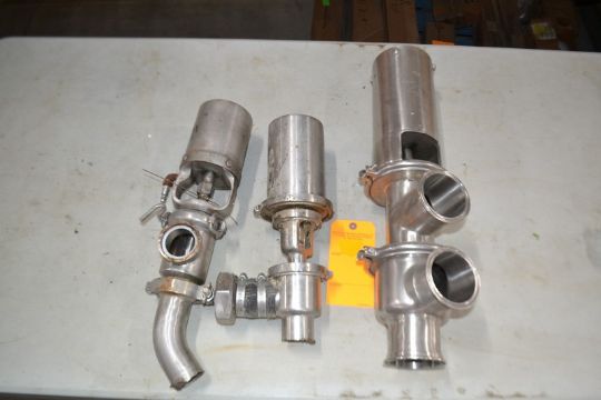 Lot of 3 S/S Valves (1) 3" Divert Type Air Valve and (2) Stainless Product 2" Stop Valves. Required Loading Fee For Simple Loading $20. (Located in Deerfield, WI)