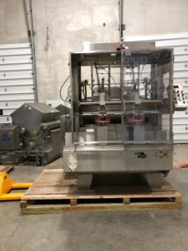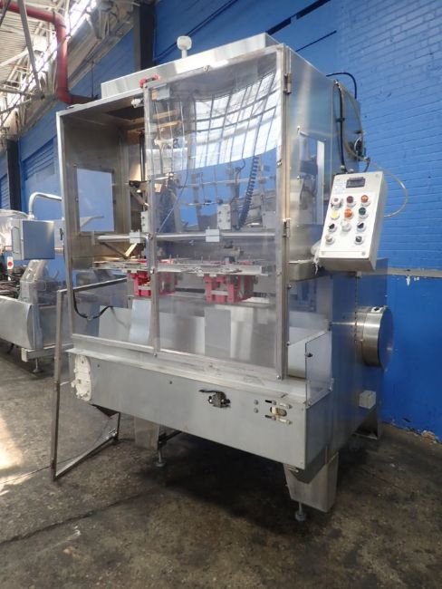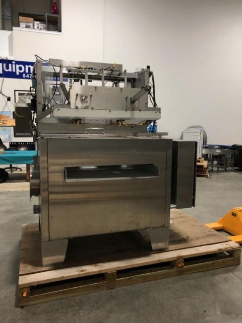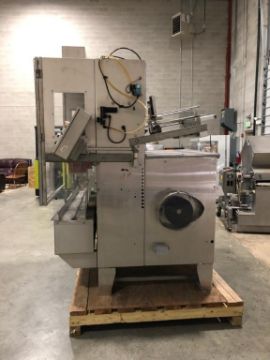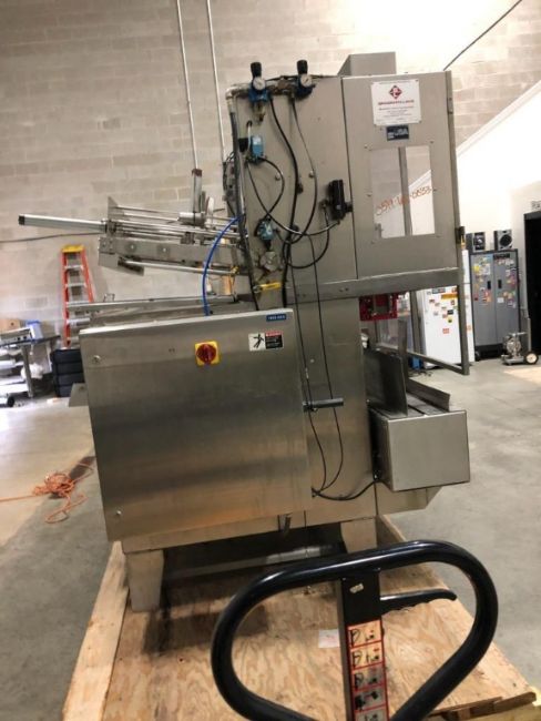 Bradman Lake 2-Head Tray Erector, Model hs2-60, S/N 15696, Mfg. 2004 - Set for 6-1/4" x 6-3/4" x 1-3/8" (2-Pack Omelets), 4-Corner Lock Tray with Full 3-Flap Lid Covers includes Quick Eject Lugged Carton Transport Conveyor (Located Illinois)