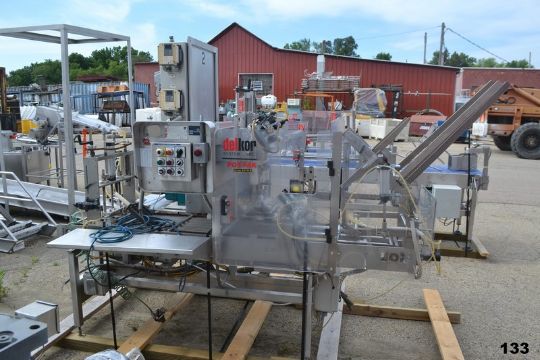 Delkor Spot Pack Product Pick and Place Packaging Machine Model SP-LH-FL, w/ Collating Conveyor; Conveyor 26"W X 12'L. Required Loading Fee For Simple Loading $200. (Located in Deerfield, WI)