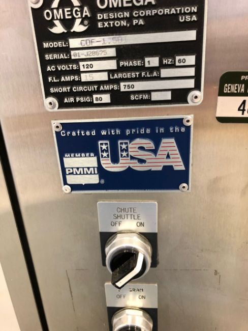 Omega Model: CDF-1.5DI Desiccant Inserter. Model: CDF-1.5DI, Serial: 01-J28675,This is a barrel type inserter. 120 Volts, 1 Phase, 60 Hz, Air: 80 PSIG - "As Shown in Photos" (Located Central New York)