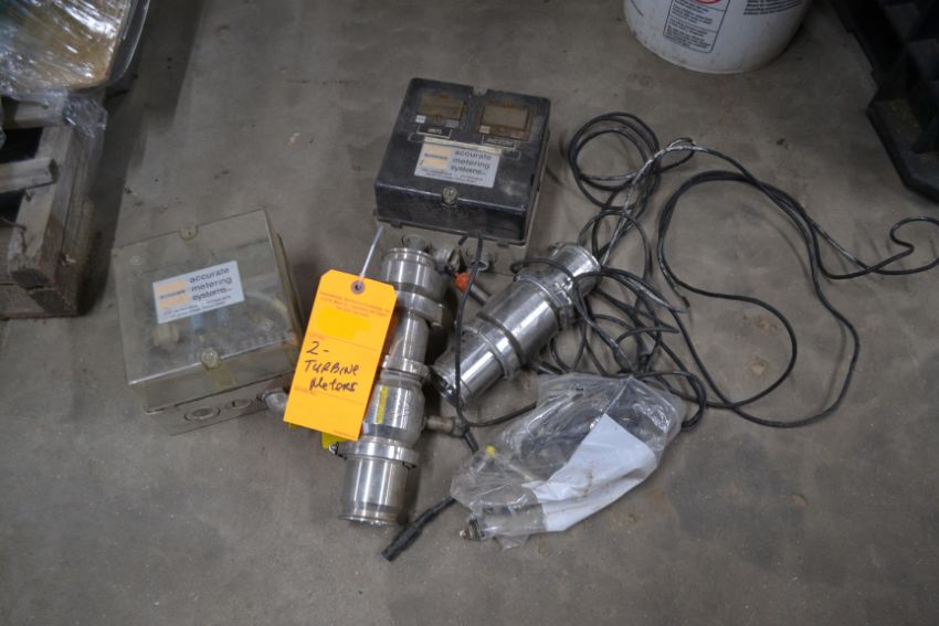 Lot of 2 Accurate Meter 2" S/S In Line Turbine Meters w/ Extra Pick Ups, and Control Boxes. Required Loading Fee For Simple Loading $25. (Located in Deerfield, WI)