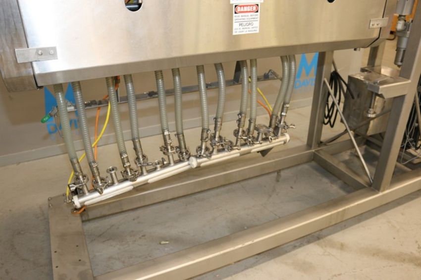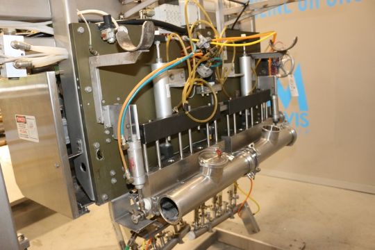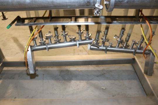 Hinds-Bock 16-Head Topping / Cream Cheese / Frosting Applicator, M/N 16P-02V, S/N 4537, Designed to be Fed Directly from Slurry Mixer, Puts Dollop of Cream Cheese Frosting/Fillings on Baked Goods / Muffins, Designed to Work Above Horizontal Conveyor and Apply Topping, with S/S Control Panel with Allen-Bradley MicroLogix 1000, Mounted on S/S Portable Frame (***LOCATED IN LINDON, UTAH****)(Riggig, Loading and Handling Fee: $250)