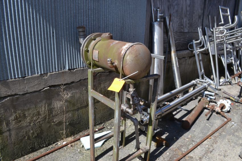 Bell & Gossett Shell & Tube Heat Exchanger: Mild Steel Shell; 10" Diameter X 27"L. W/ 3" Ports on Stand w/ Stream Trap. Required Loading Fee For Simple Loading $25. (Located in Deerfield, WI)