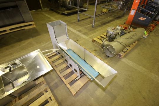 Section of Feeder Conveyor, Aprox. 6-1/2" W Belt, Mounted on S/S Frame (LOCATED IN MEDFORD, WI) (Rigging, Loading & Site Management Fee: $40.00 USD)