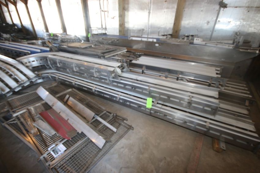 Assorted S/S Conveyor Frame with Straight & Curve Sections (NOTE: Missing Belts, Drives, & Legs) (LOCATED IN TOY BARN) (LOCATED IN MEDFORD, WI) (Rigging, Loading & Site Management Fee: $200.00 USD)