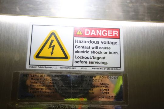 Mettler Toldeo Hi-Speed Check Weigher, M/N XS3 CombiChecker, 110 Volts, 1 Phase, with Aprox. 11" W Conveyor Belt (LOCATED IN MEDFORD, WI)(Rigging, Loading & Site Management Fee: $200.00 USD)